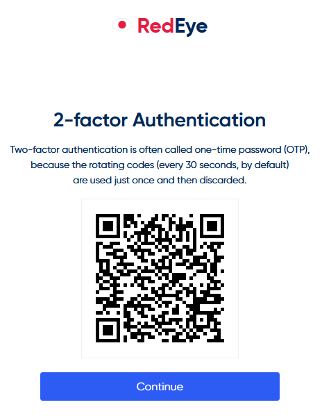 When first accessing RedEye after 2FA is enabled, you will be presented with a QR code: