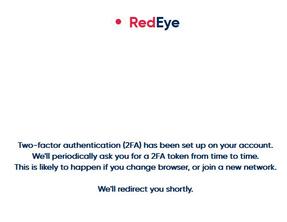 After entering the code and pressing 'Submit' in RedEye, you will briefly see the following window (for approximately 5 seconds), before being redirected to the homepage dashboard.