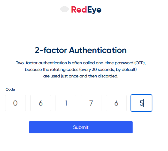 Only the code shown currently in the authenticator is valid. Enter the code displayed in the authenticator app into RedEye.
