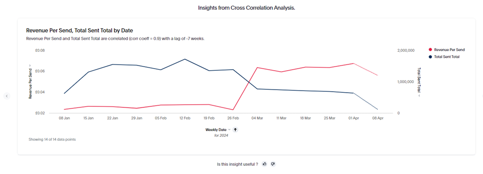 Revenue per Send will help you to identify any cross-correlation between your click engagement levels and the revenue that was driven across the same timeframes:
